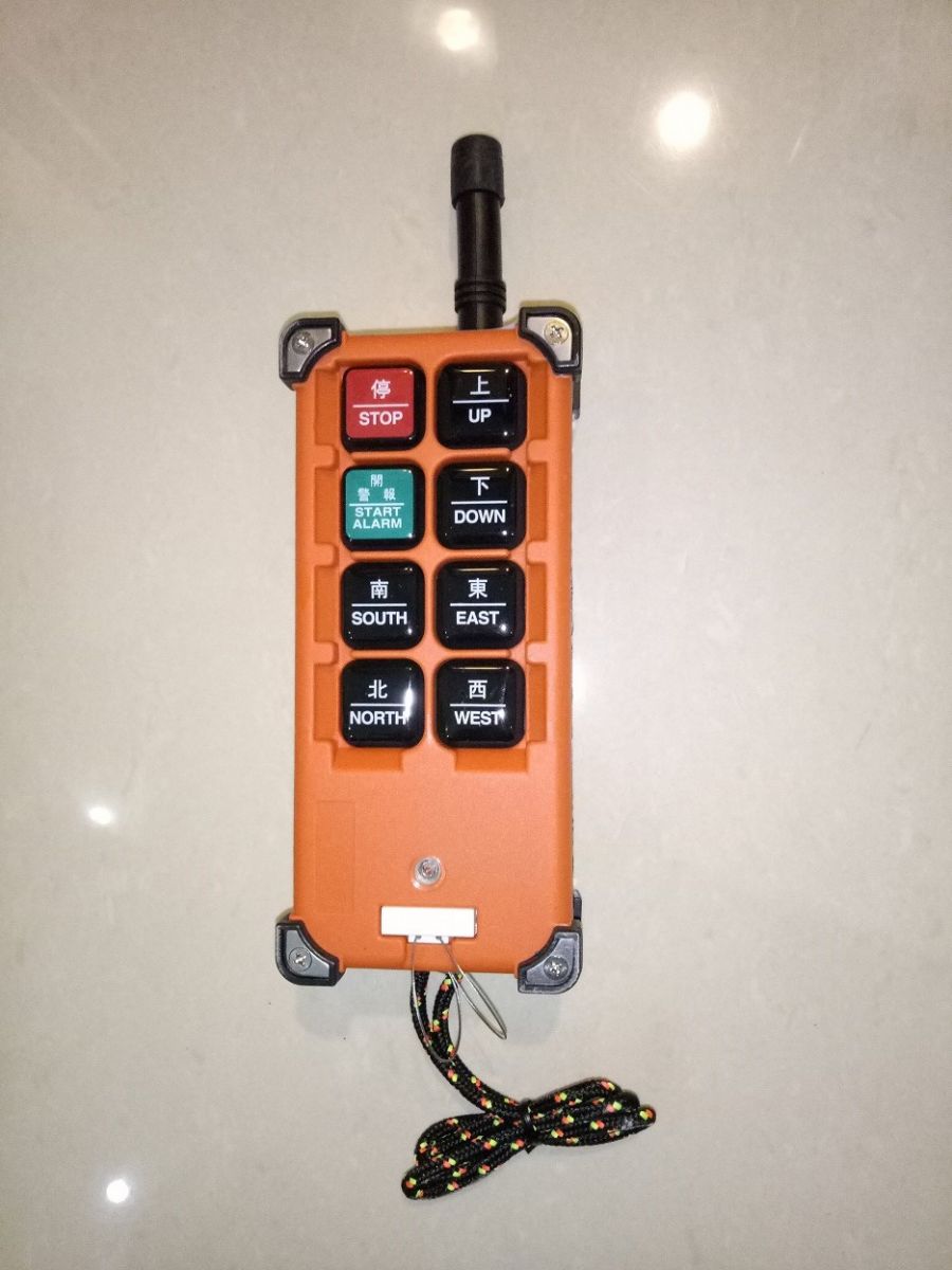 臺(tái)灣禹鼎F21-E1B,六路無(wú)線遙控器,一個(gè)啟動(dòng)按鍵,一個(gè)停止按鍵,六個(gè)方向按鍵。