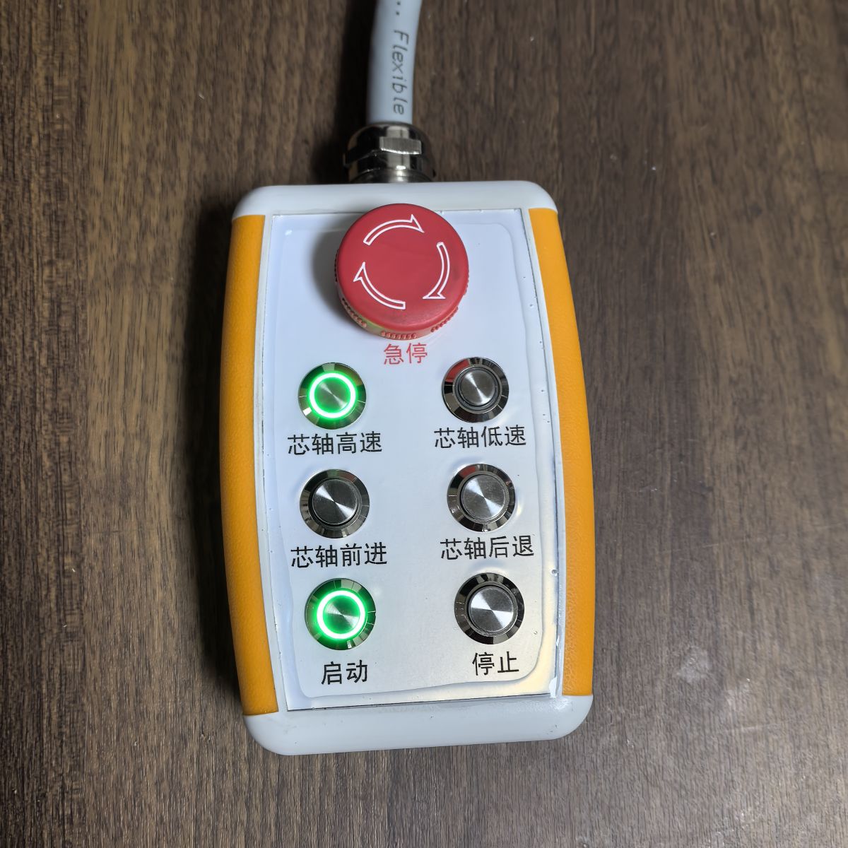 鹽城瑞久機(jī)電科技有限公司可以為客戶定制各種機(jī)械設(shè)備、機(jī)器人線控操作手柄,控制面板布局、元器件(按鈕、旋鈕、撥動(dòng)開關(guān)、多檔開關(guān)、船型開關(guān)、搖桿等)選用、輸出形式(開關(guān)點(diǎn)、電位器、脈沖信號(hào)等)都可以定制哦!還可以做指示燈顯示。可以根據(jù)要求匹配適合長度的拖線電纜。